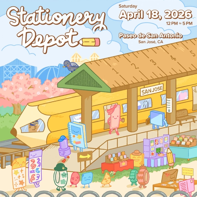ALL ABOARD! Stationery Depot, a celebration of all things paper, notebooks, washi tape, and stickers, returns to San José on Saturday, April 18, 2026. This 2nd annual event will feature 55+ outstanding makers, stationery creators, illustrators, and local creative small businesses PLUS fun workshops, activities, and activation stations.